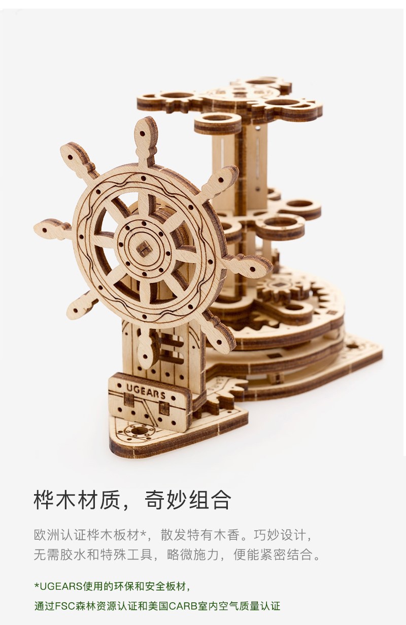 乌克兰Ugears木质机械传动模型|舵轮旋转笔架