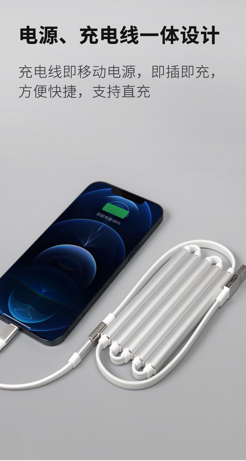 移动电源|充电线|lightning和type-c接口可转换