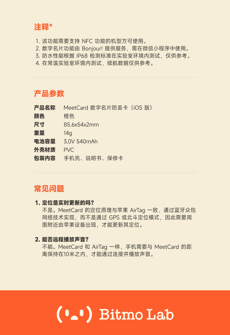 Bitmolab MeetCard 数字名片防丢卡