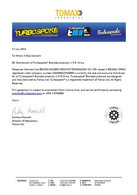爱尔兰Turbospoke中国总代落户麦极